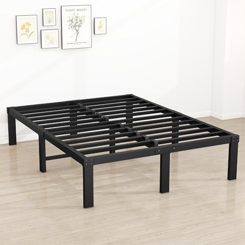 4ft6 Double Bed Frames, 36cm High Metal Platform Bed Frames Double with Storage Under Bed/Steel Slats Mattress Base, No Box Spring Needed, Enhanced