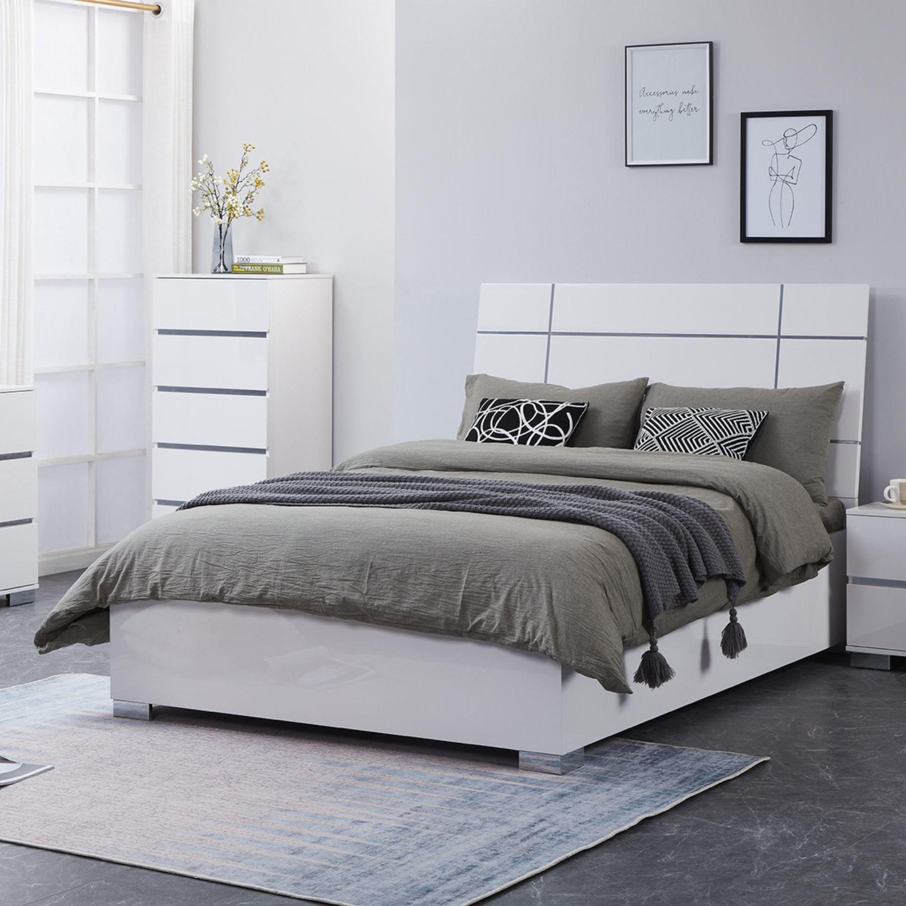 Contemporary Style White High Gloss Bed Frame