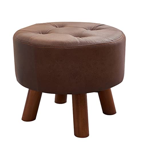 Small Foot Stool Ottoman with Stable Wood Legs Upholstered Footstool Padded Foot Rest Step Stool for High Beds Seat Chair Couch Sofa Patio Bedroom Living Room Office (5.9" H-Brown)