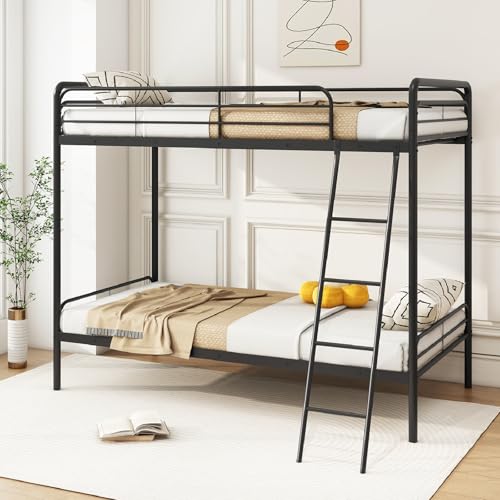 Multigot Metal Bunk Bed, Space-Saving Loft Bed Frame with Safety Guardrail, Single Ladder Bed High Sleeper Beds for Kids Teens Adults (Black)