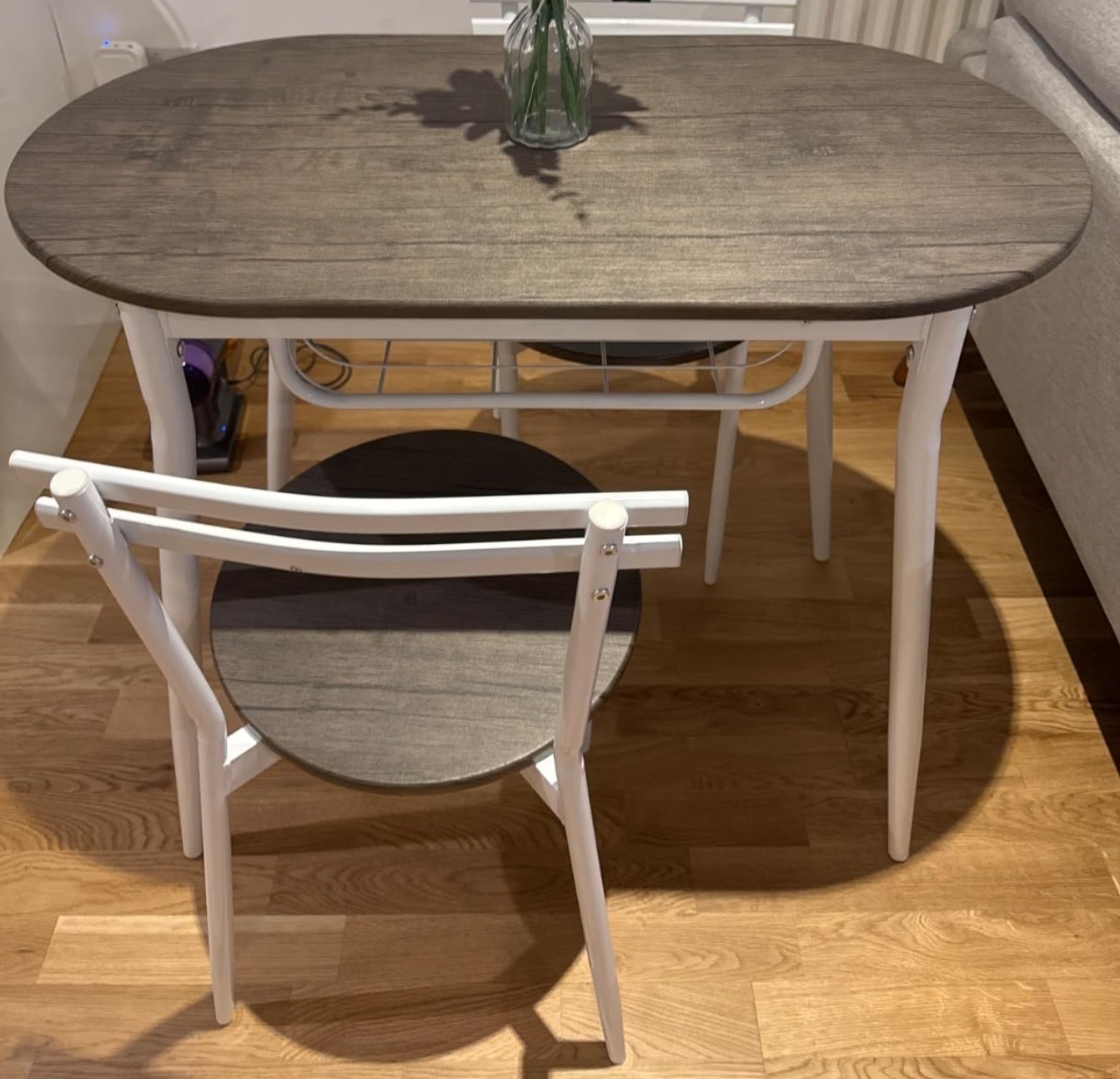 Small Dining Table and 2 Chairs Kitchen Breakfast Set Compact Wooden Metal Bar
