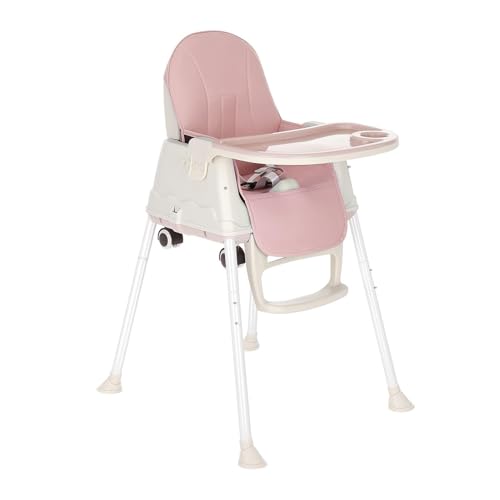 M.J COMFY-LIFE 3-in-1 Convertible Baby High Chair – Adjustable Toddler Feeding Chair with Removable Tray, 5-Point Harness, and Wooden Legs – Suitable from 6 Months to 5 Years (Pink)