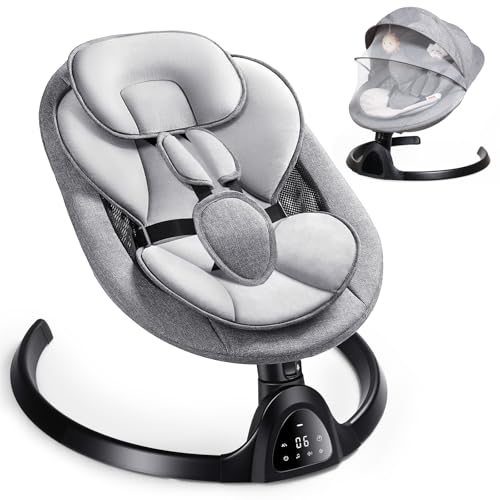 Fdlscpem Baby Swing Chair,Electric Baby Bouncer Chair Control with mobile app and Touch Panel,Baby Bouncer from Birth with 0–10 Months,5 Swing Amplitudes 3-Stage Timer,Newborn Bouncer grey