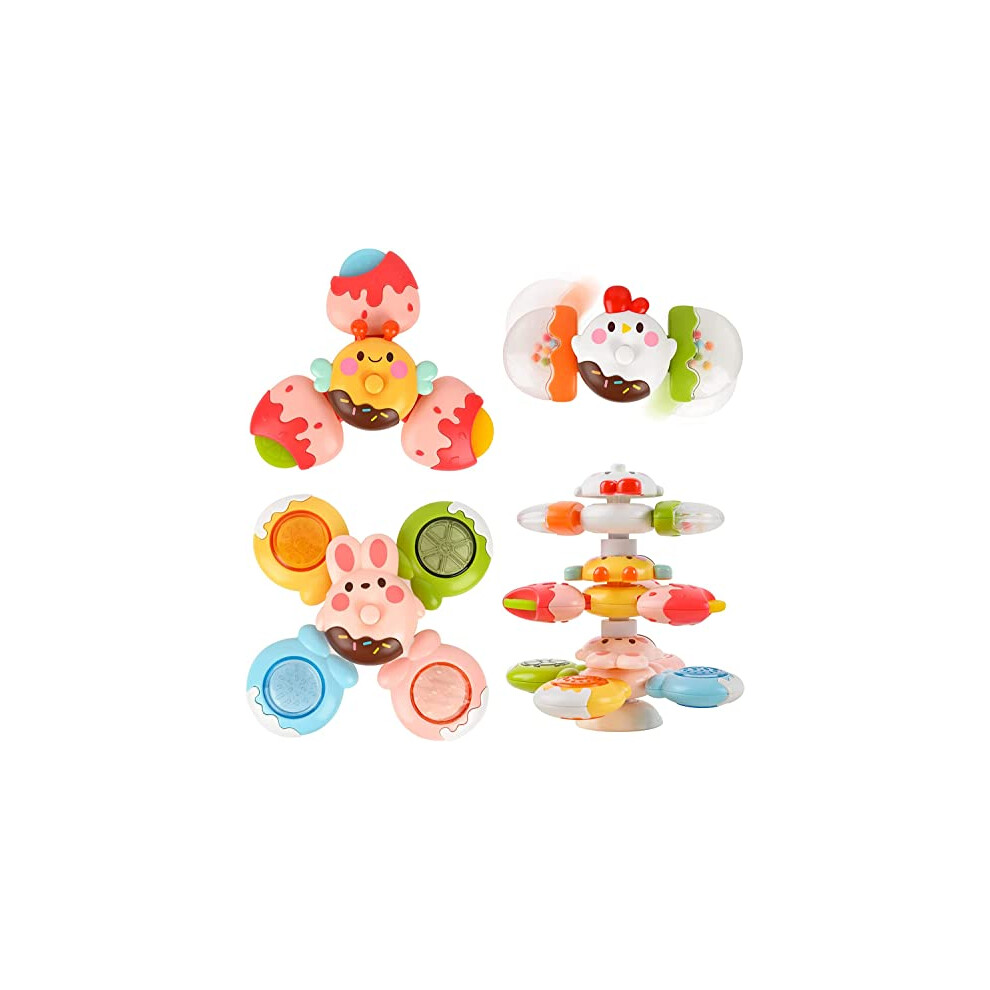 Baby Suction Cup Spinning Top Toys, Spinner Toys for Babies, Window Suction for Baby High Chair Tray Bath Table Airplane Travel, Gift for Toddlers (4 Pcs)