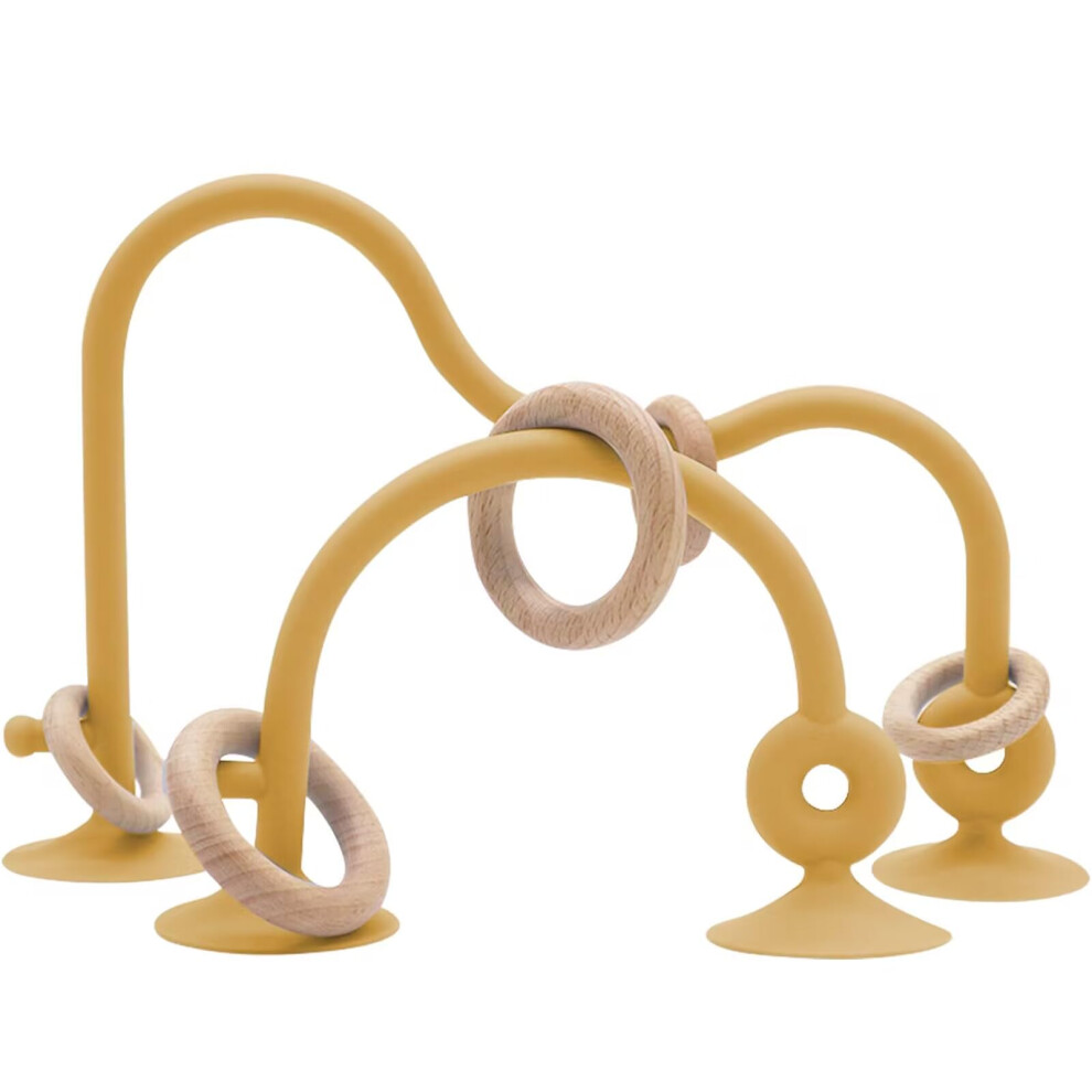 zeeloopbee Baby Teething Toy, High Chair Suction Toys with Wooden Ring for Infant Toddlers 0-6 Months, Textured Silicone Teether Sensory Teething Toys for Baby Gifts 6-12+ Months, Beige