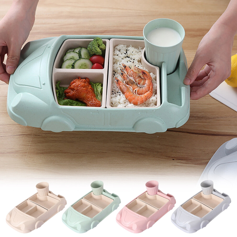 Cute 4-Compartment Divided Dinner Trays for Babies & Toddlers â Plastic Portion-Control Lunch Plates, Compatible with Standard High Chairs