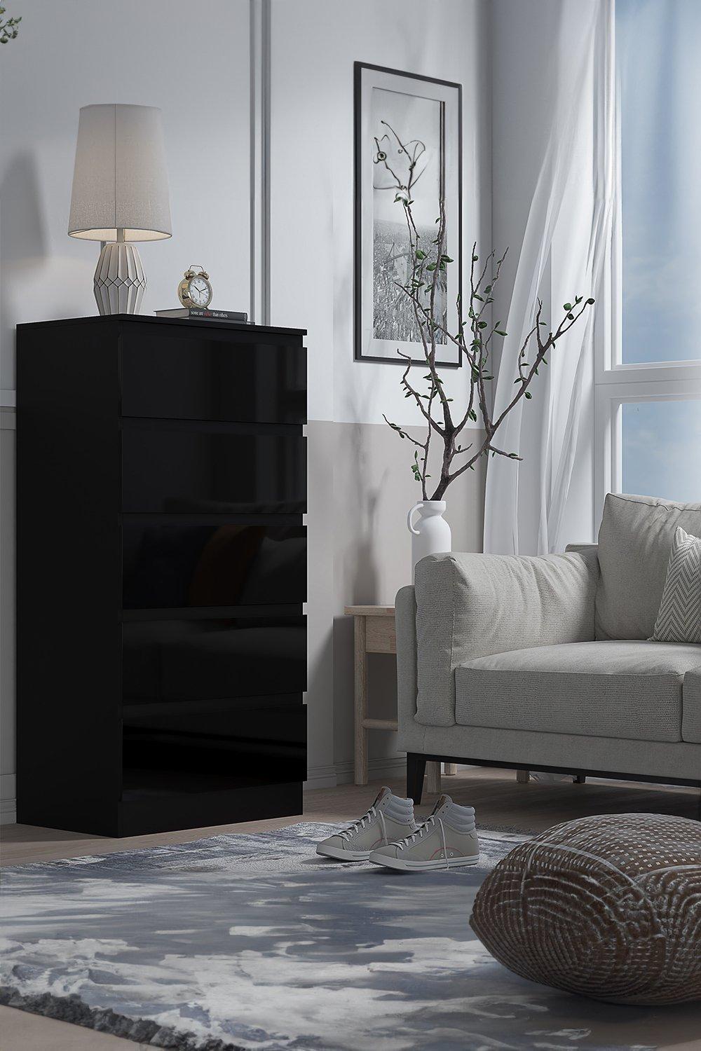 5 Drawer High Gloss Black Chest Of Drawers - Stora