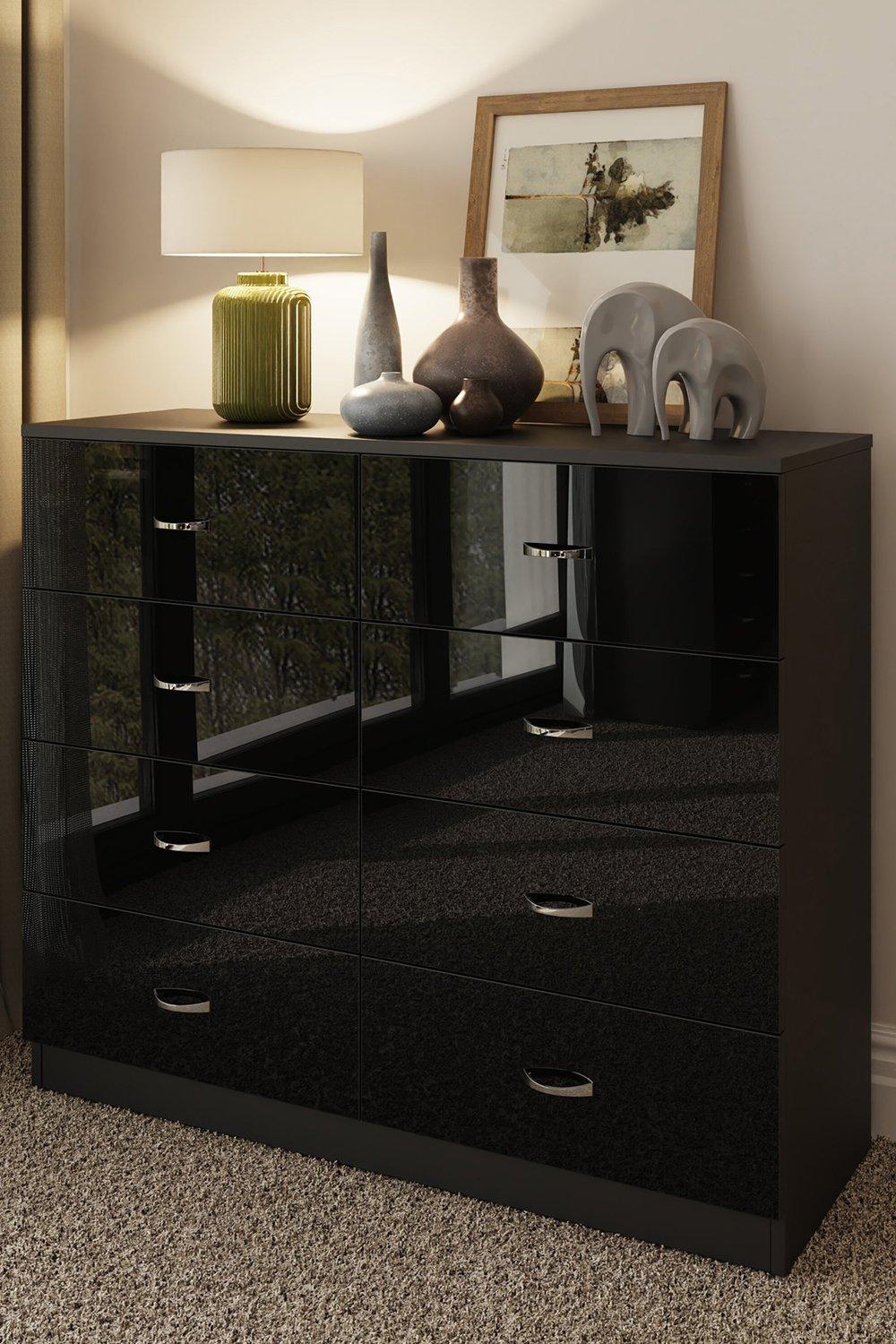 8 Drawer High Gloss Black Chest Of Drawers - Chilton