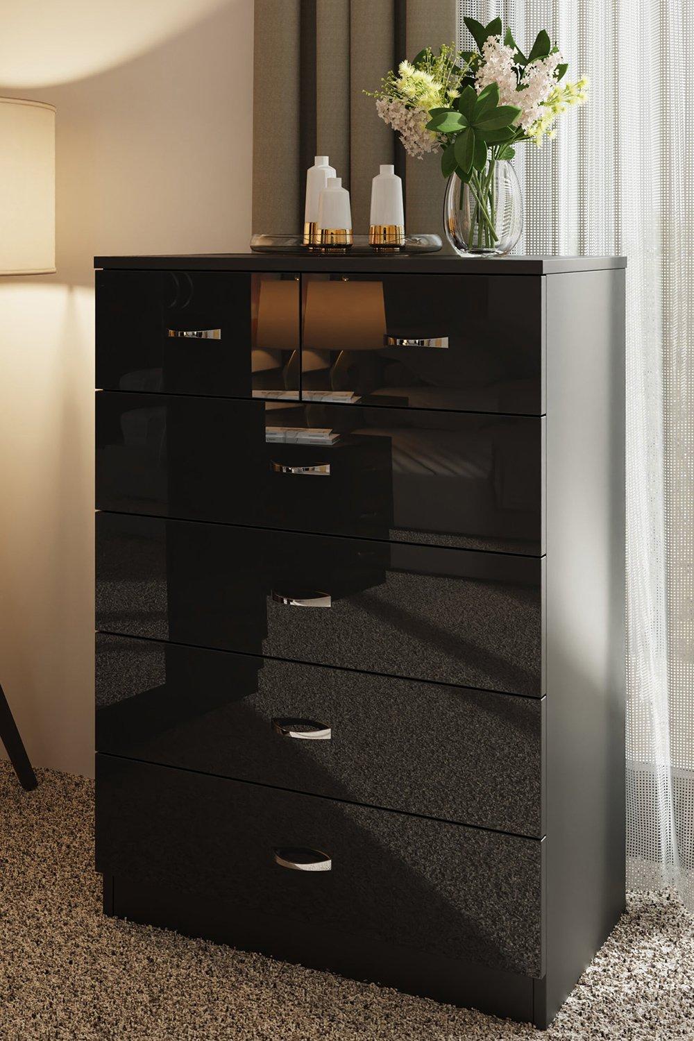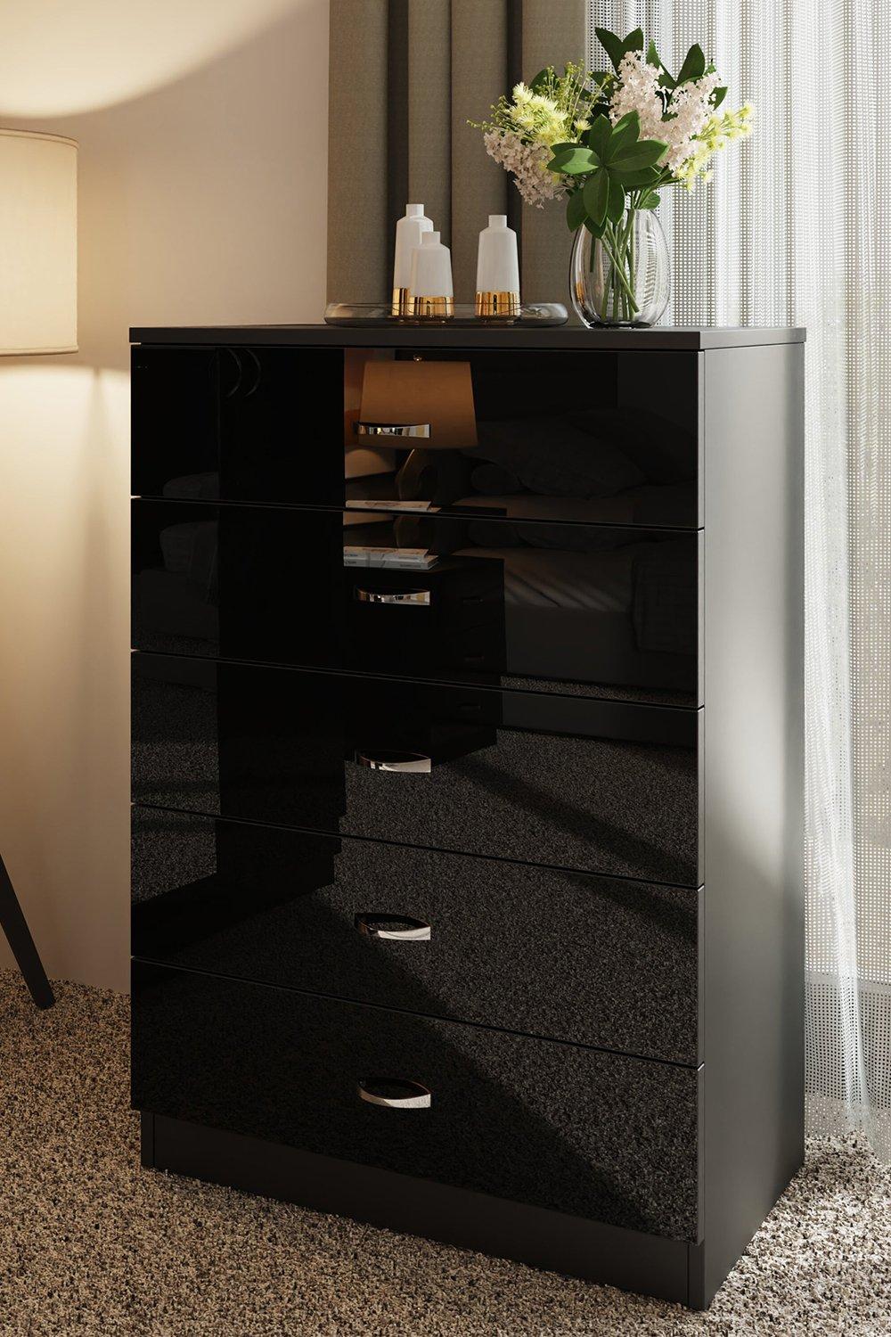5 Drawer High Gloss Black Chest Of Drawers - Chilton