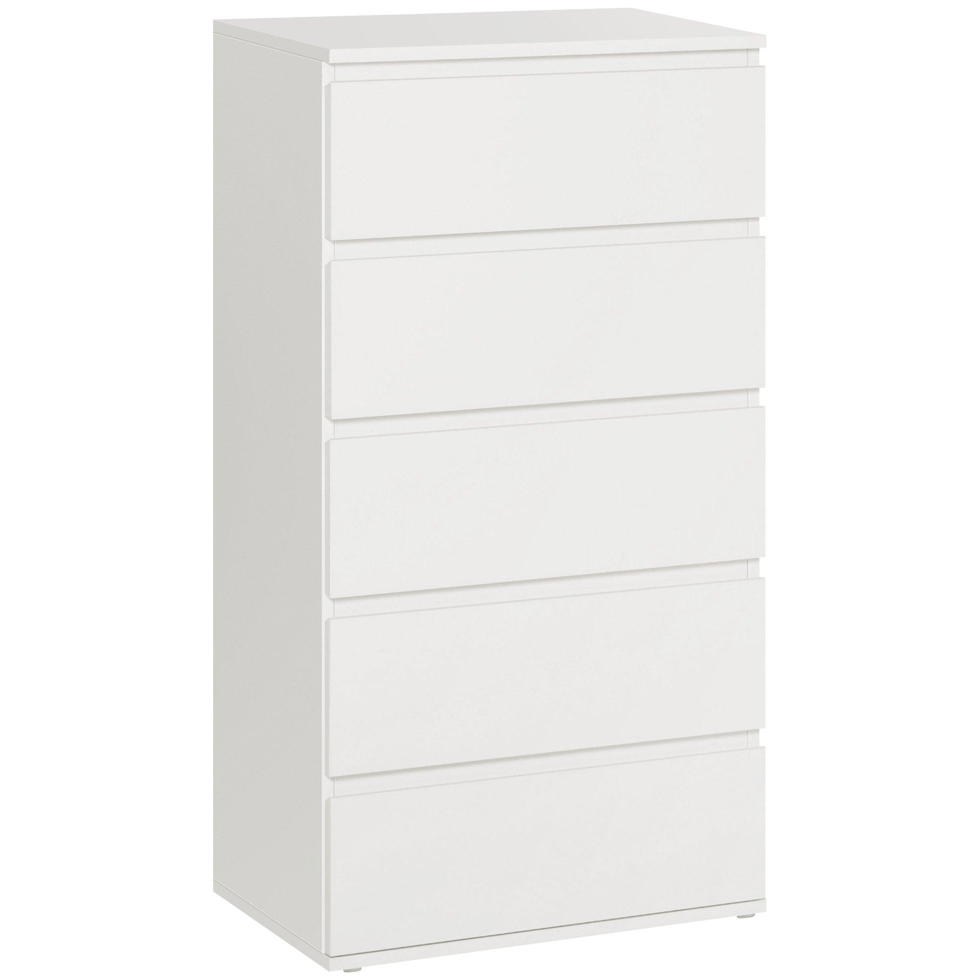 Panana Modern High Gloss Chest of Drawers, 3/4/5/6 Drawer Wooden Dresser with Metal Runner Bedside Table No Handle Sleek Design Storage Organizer Unit for Living Room Bedroom (White, 5 Drawers)