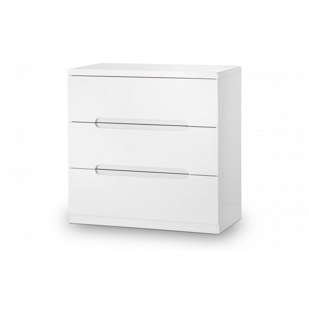 Blisswood High Gloss Chest of Drawers 3 Drawer Bedroom Storage Cabinet with Metal Runners, White Gloss Furniture for Bedroom Storage, Living Room, Nursery or Office Furniture (40D x 70W x 77H cm)