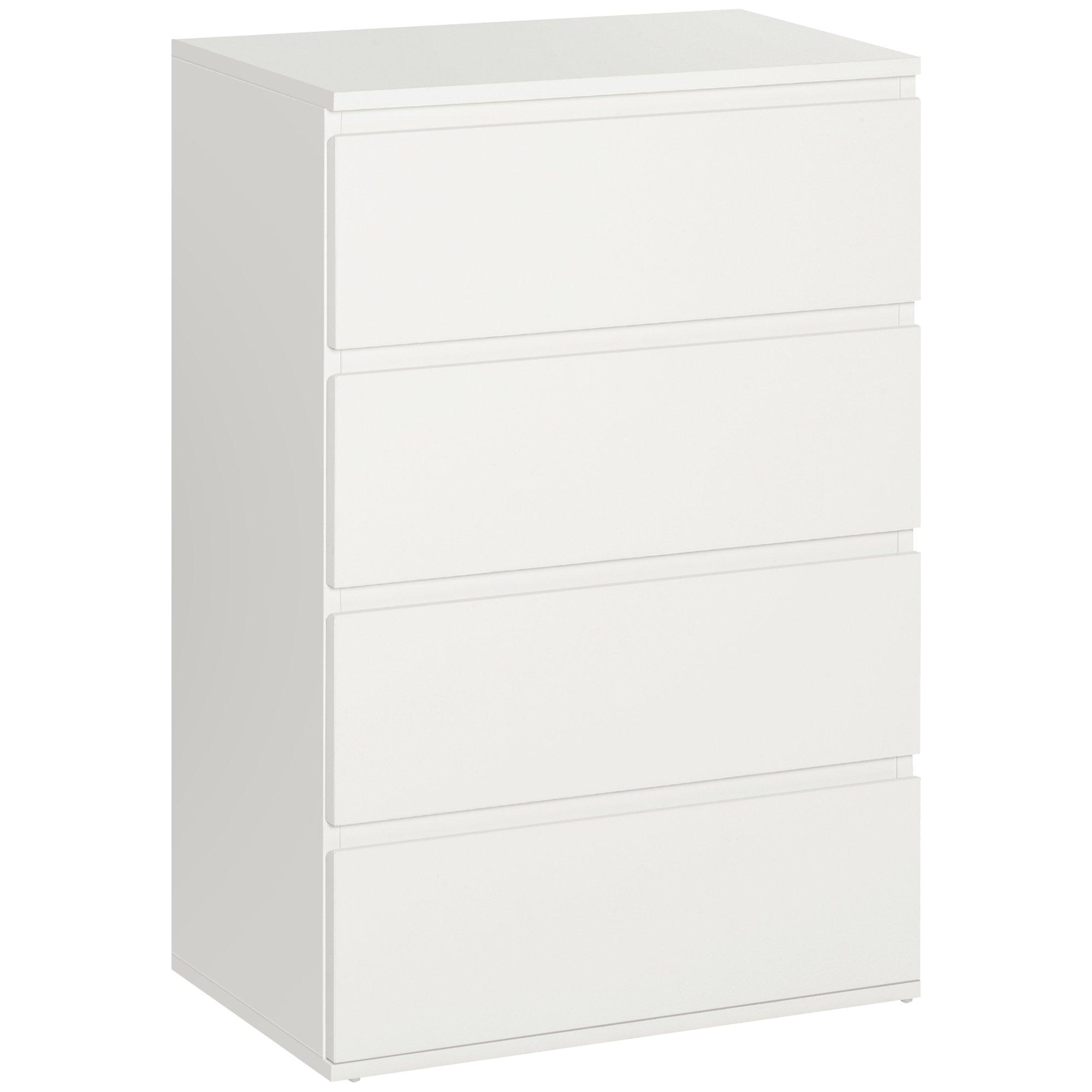 High Gloss Chest of Drawers, 4 Drawer Bedroom Chest of Drawers MDF Chest of Draws Bedside Table Storage Cabinet for Bedroom Living Room Office Hallway Furniture, White, 70W x 40D x 95.5Hcm