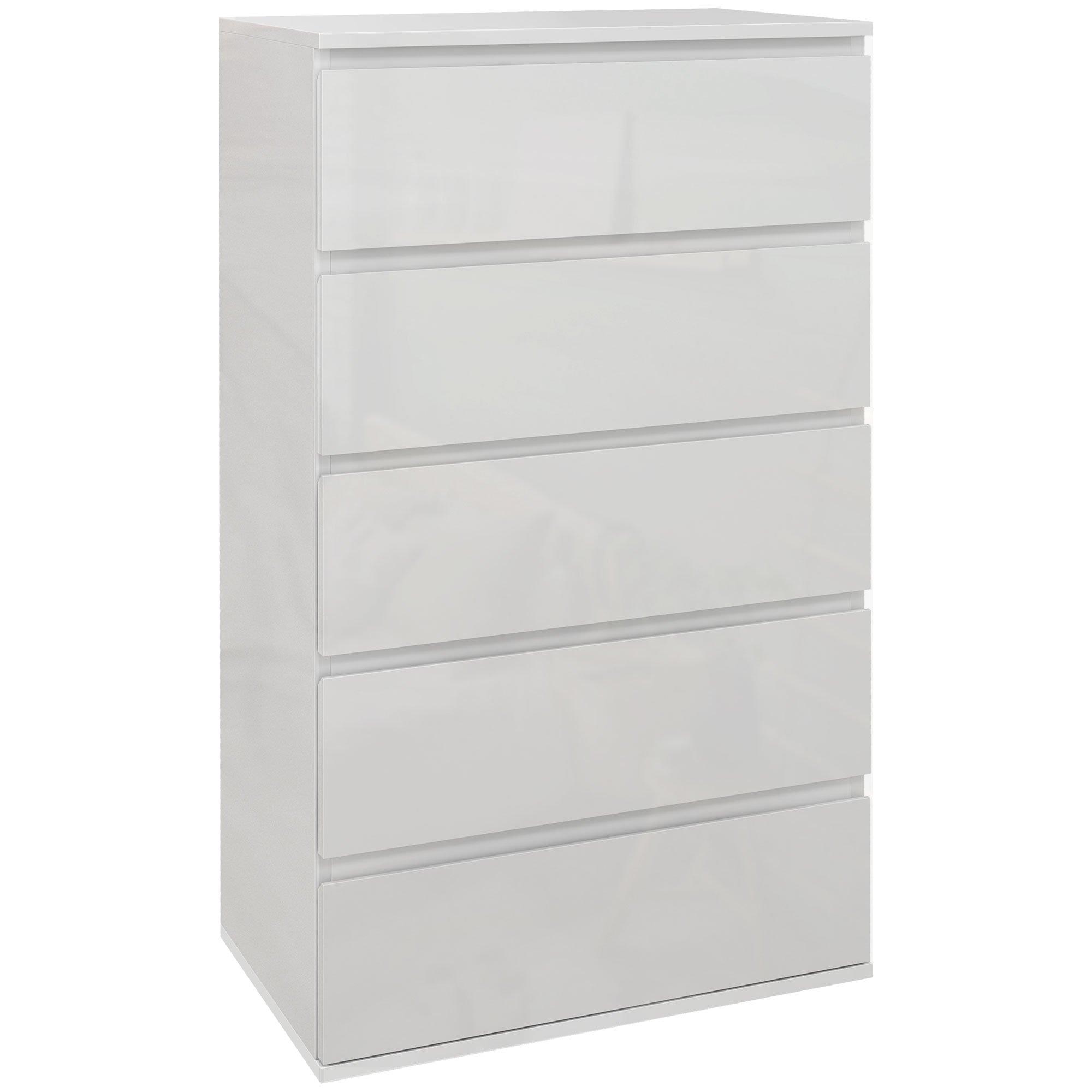 High Gloss White Chest of Drawers, 5 Drawer Bedroom Chest of Drawers MDF Chest of Draws Tall Dresser Bedside Table Storage Cabinet for Bedroom Living Room Office Hallway Furniture, 70W x 40D x 112H cm