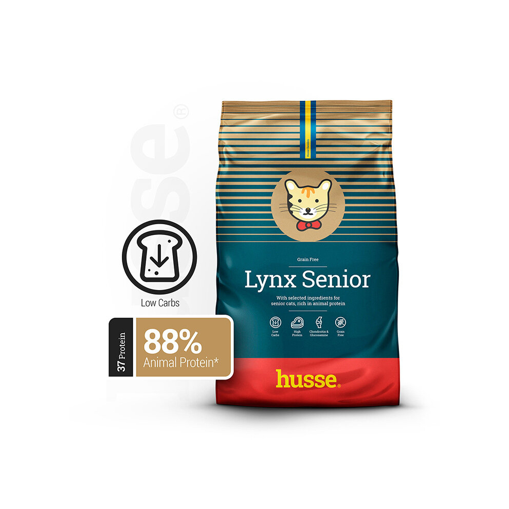 Husse Natural Complete Senior Delicious Dry Cat Food Chicken & Salmon Grain Free Gluten Free High Protein & Fat Low Carbohydrate - Lynx Senior 7kg