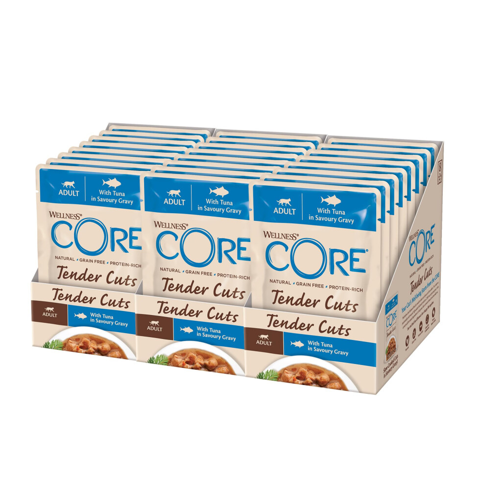 Wellness CORE Tender Cuts, 24 x 85g, Tuna, Wet Cat Food Pouches, Tender Pieces in Sauce, All-Natural, Grain-Free, High Meat Content, Protein-Rich, No