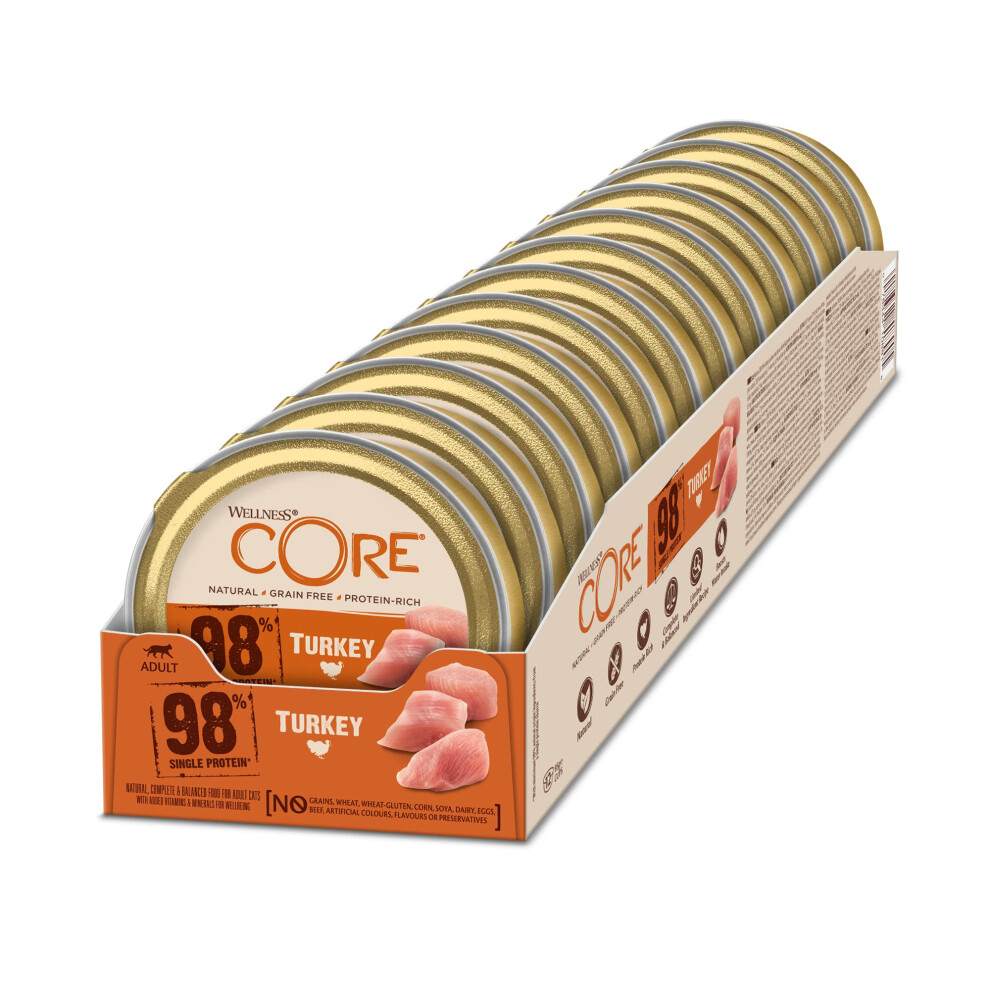 Wellness CORE 98 Percent, 12 x 85g, Turkey, Wet Cat Food, Chunky Cat Pate, All-Natural, Grain-Free, High Meat Content, Protein-Rich, Limited