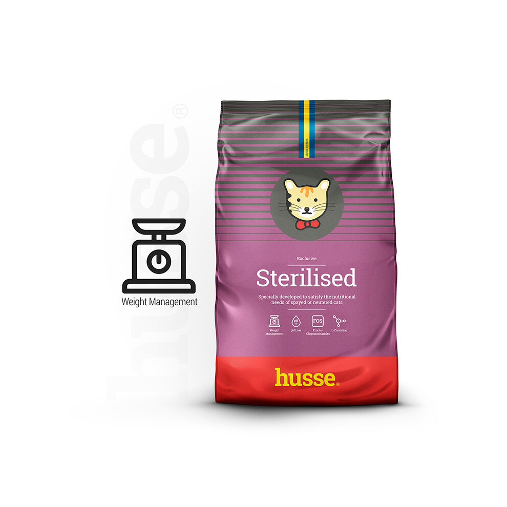 Husse Exclusive Sterilised Dry Cat Food â Chicken-Based Weight Management, 7kg, High-Protein & Digestive & Coat Support