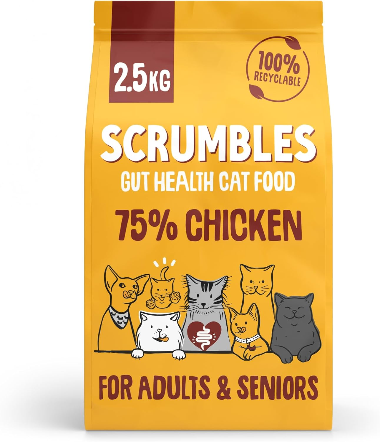 Scrumbles All Natural Dry Cat Food 75% Chicken High Protein for Adult & Senior Cats 2.5kg