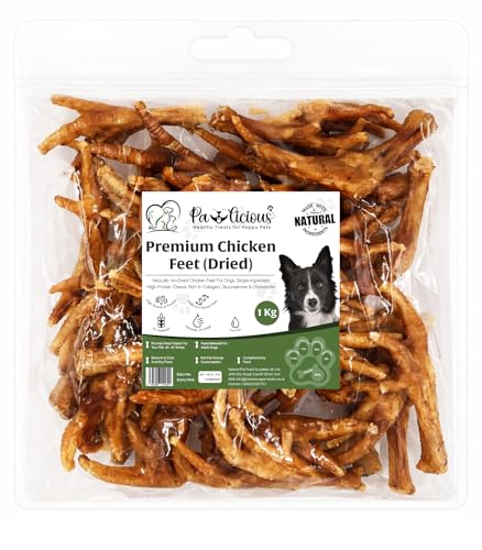 PAWLICIOUS 1Kg 100% Natural Dried Chicken Feet for Dog, Puppies & Cat, High Protein Crunchy Dog Treat Hypoallergenic Pet Food Delicious Tasty Healthy Snacks Sticks