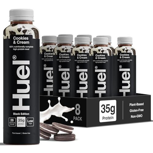 Huel Black Edition Ready-to-drink, 8 x 500ml Bottles, Protein Shakes, Cookies & Cream Flavour, High Protein Drink, 35g Protein Per Bottle, Rich in Vitamin D, Fatty Acids, Calcium, Ready Meals