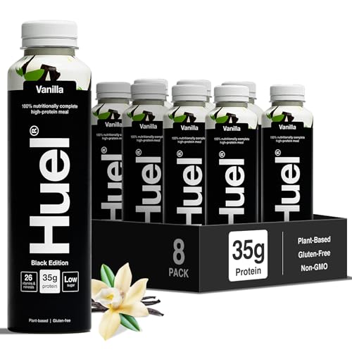 Huel Black Edition Ready-to-drink, 8 x 500ml Bottles, Protein Shakes, Vanilla Flavour, High Protein Drink, 35g Protein Per Bottle, Rich in Vitamin D, Fatty Acids, Calcium, Ready Meals
