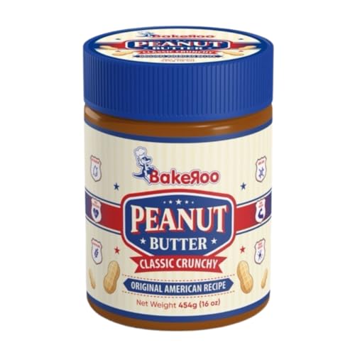 Bakeroo Crunchy Peanut Butter 454g | High Protein Spread Made with Roasted Peanuts | American Recipe | Rich Source of Energy & Fiber | Ideal for Breakfast, Shakes & Smoothies
