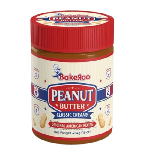 Bakeroo Creamy Peanut Butter 454g | High Protein Spread Made with Roasted Peanuts | American Recipe | Rich Source of Energy & Fiber | Ideal for Breakfast, Shakes & Smoothies