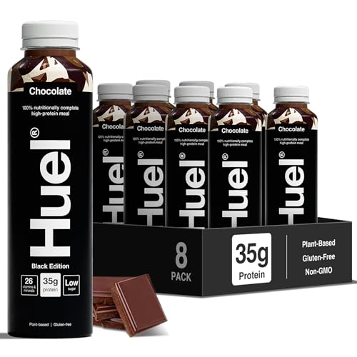 Huel Black Edition Ready-to-drink, 8 x 500ml Bottles, Protein Shakes, Chocolate Flavour, High Protein Drink, 35g Protein Per Bottle, Rich in Vitamin D, Fatty Acids, Calcium, Ready Meals