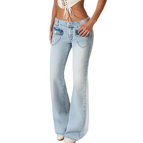 Women Trousers - Wide Leg Jeans for Women Uk Women's Low Rise Stretch Jeans Flared Bootcut Pants High Elasticity Slim Fit Denim Trousers Fashionable Casual Daily Wear