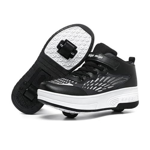 Surwin High Top Roller Skates, Roller Skates for Girls Boys, 2 in 1 Kids Roller Skates, Detachable Retractable Skating Shoes, Roller Shoes with 2 Wheels, for Outdoor Sports Walking Black White