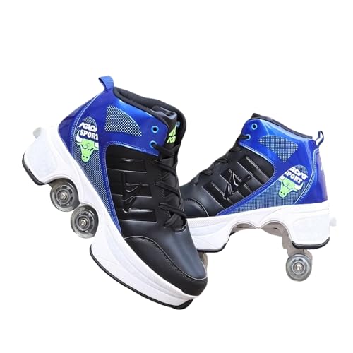Unisex 2-in-1 High-top Roller Skate Sneakers | 4-Wheel Kids Skates with Detachable Wheels Double-Row Deform Wheel | 2-in-1 Invisible Deformation Automatic Walking Shoes(black,38)