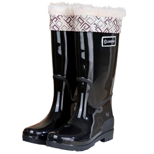 Wellington Boots Women's Rain Boots Fashion Slip High Top Outdoor Shoes for Hiking Camping Everyday Wear Comfortable Low Heel Ski Roller Shoes Women, black, 2/2.5 UK