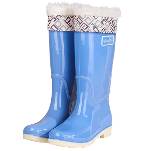 Wellington Boots Women's Rain Boots Fashion Slip High Top Outdoor Shoes for Hiking Camping Everyday Wear Comfortable Low Heel Ski Roller Shoes Women, sky blue, 2/2.5 UK