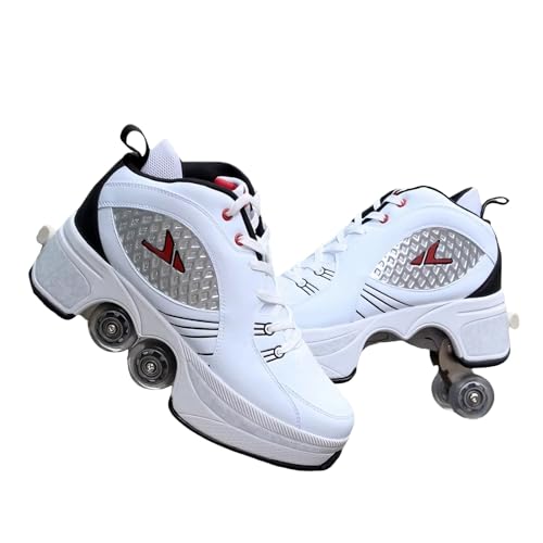 Unisex 2-in-1 High-top Roller Skate Sneakers | 4-Wheel Kids Skates with Detachable Wheels Double-Row Deform Wheel | 2-in-1 Invisible Deformation Automatic Walking Shoes(WHITE,40)