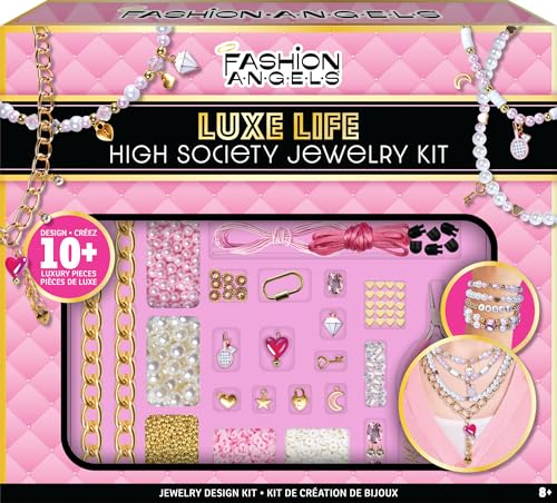 Basic Fun Fashion Angels Luxe Life – High Society Jewellery Kit for Girls – Includes 10+ Luxury Charms, Gold Chains, Gemstone Beads & Tools – Make Elegant DIY Jewellery – Ages 8+