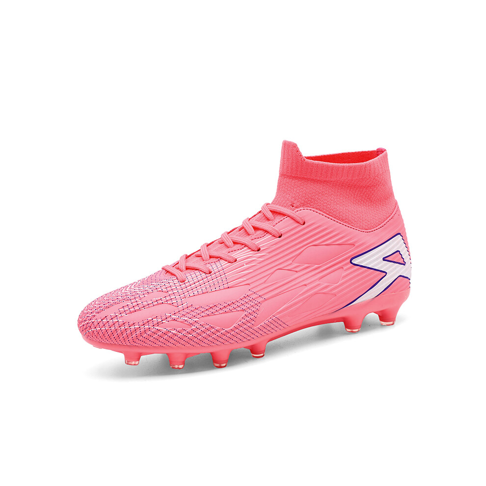 (2582-C-Pink, 37) Men's Football Boots FG/TF Outdoor Sports Shoes High-top Society Soccer Cleats Teenager's Anti-slip Training Sneakers 2025 New