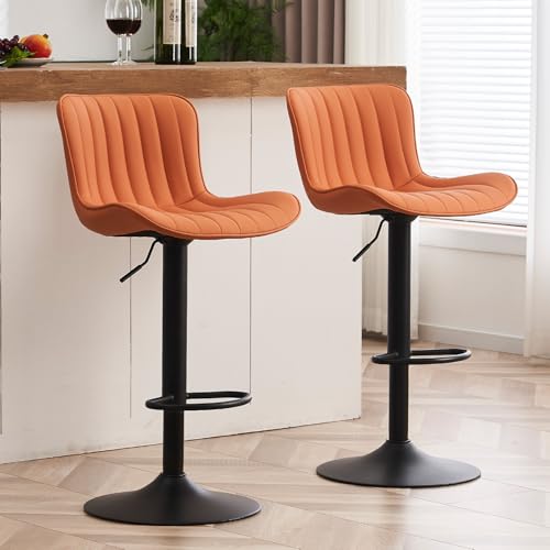 Kidol & Shellder Bar Stools Set of 2 Swivel Barstools Faux Leather Adjustable Soft Cushion High Backrest Counter Stools, Camel, 3-5 Mins to Assemble, Loads 300lbs