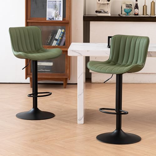 Kidol & Shellder Bar Stools Set of 2 Swivel Barstools Faux Leather Adjustable Soft Cushion High Backrest Counter Stools, Olive Green, 3-5 Mins to Assemble, Loads 300lbs
