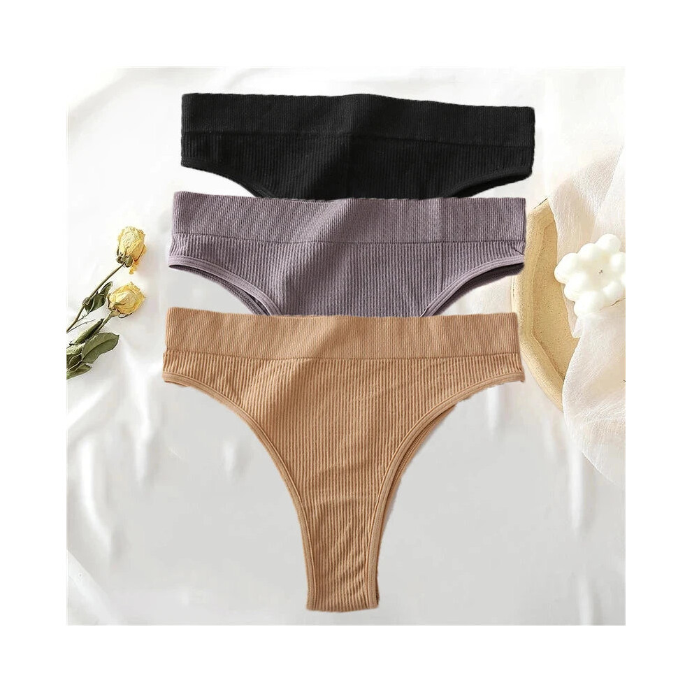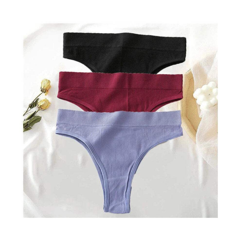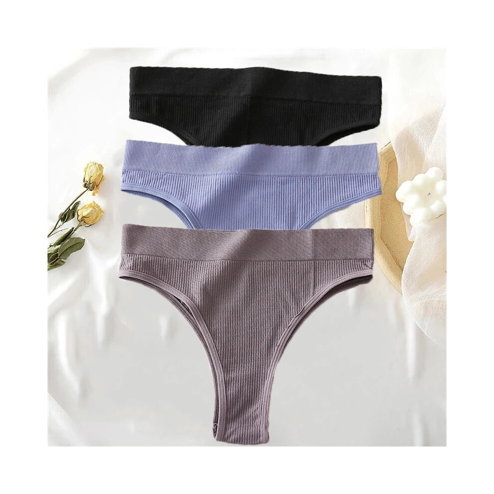 (Set3, 3pcs) 3pcs Cotton Panties High Waisted Thongs Comfortable Sexy Underpants
