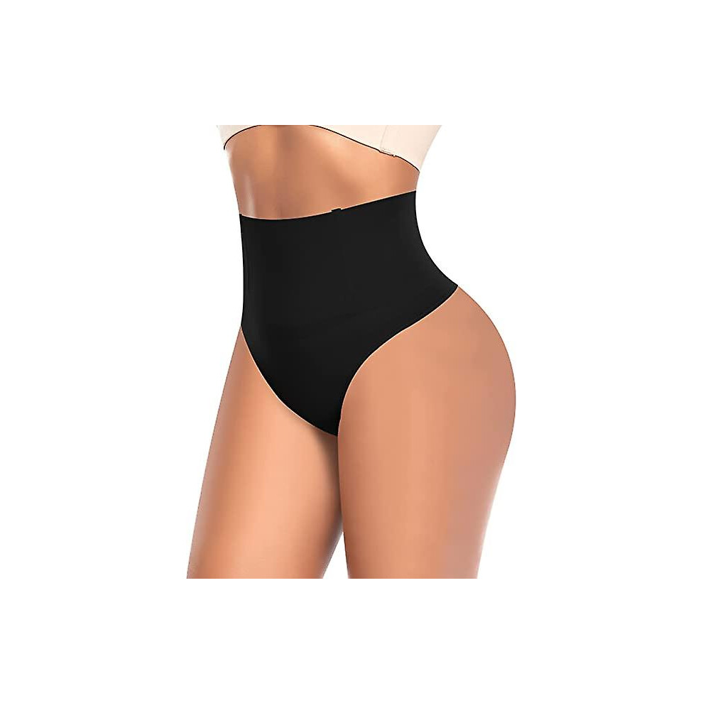 (black, M) Shapewear Thong For Women Tummy Control Knickers High Waisted Thongs Slimming Body Shaper Shaping Underwear