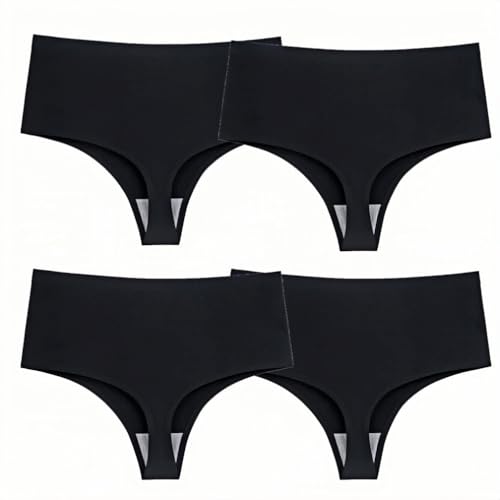 OVRUNS Seamless Thongs for Women No VPL Knickers High Waisted Invisible Underwear Black