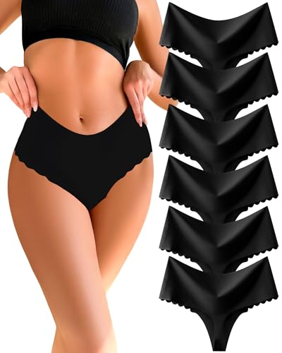 READY TO LOVE Seamless Thongs for Women High Waisted Rise Underwear No VPL Knickers for Women Multipack No Show Ladies Knickers Sexy Panties Scalloped Edge Womens Briefs 6 Pack