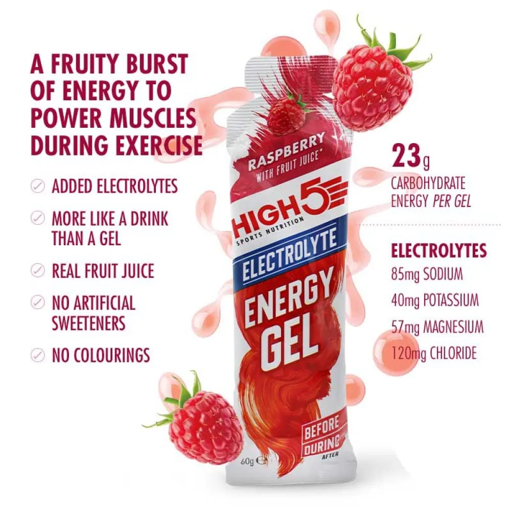 HIGH5 Energy Gels with Electrolytes - Quick Release Sports Gels for Peak Performance - Natural Fruit Juice & Caffeine-Free - Energy Boost for Running, Cycling, Endurance (Raspberry, 20 x 60g)
