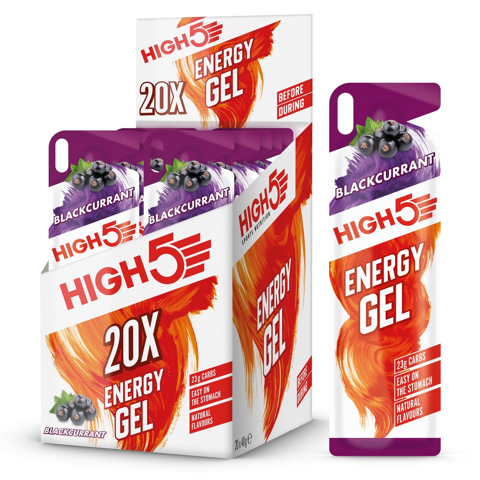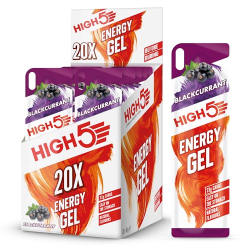 HIGH5 Energy Gels - Quick Release Sports Gels to Power Muscles for Top Performance - Natural Fruit Juice & No Caffeine - On The Go Energy Boost for Running, Cycling, Endurance (Blackcurrant, 20 x 40g)