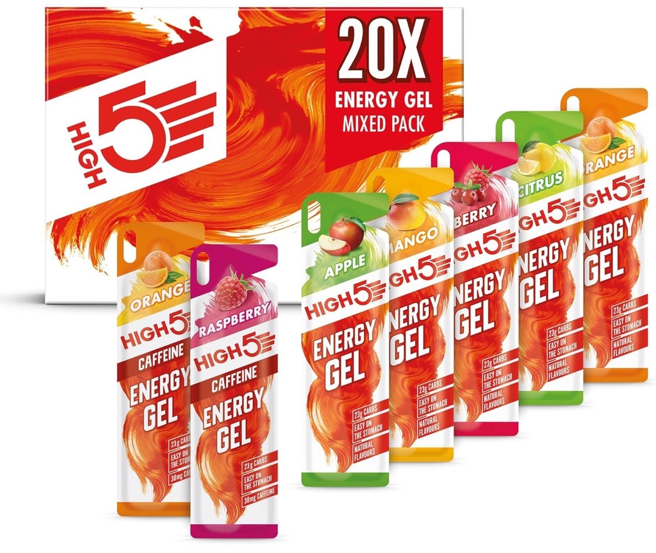 HIGH5 Energy Gels 20 x 40g – Caffeine-Free Assorted Flavours – Running Fuel