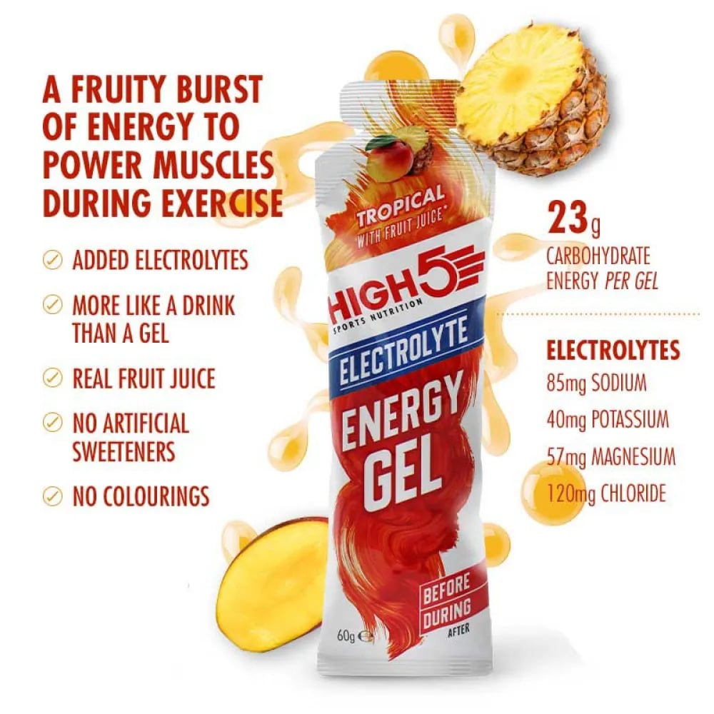 High5 Electrolyte Energy Gels Box Tropical 60g 20 Units