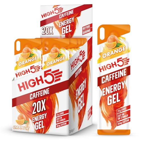 HIGH5 Caffeine Gels Running - Glucose Shots for Instant Energy and Running Fuel - Natural Fruit Juice Energy Shots - Sports Gel for Running, Cycling, Ultra Marathon, Ironman (Orange, 20 x 40g)