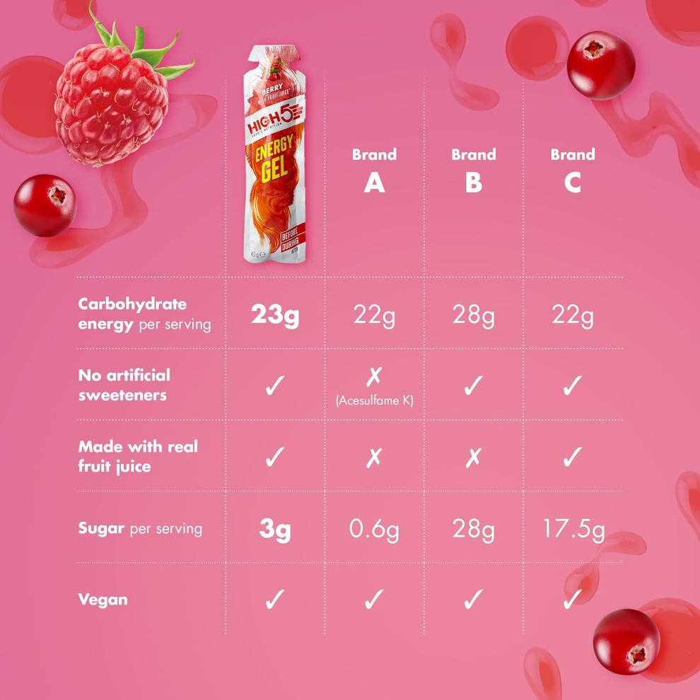 HIGH5 Energy Gels - Quick Release Sports Gels to Power Muscles for Peak Performance - Natural Fruit Juice & Caffeine-Free - On The Go Energy Boost for Running, Cycling and Endurance (Berry, 20 x 40g)