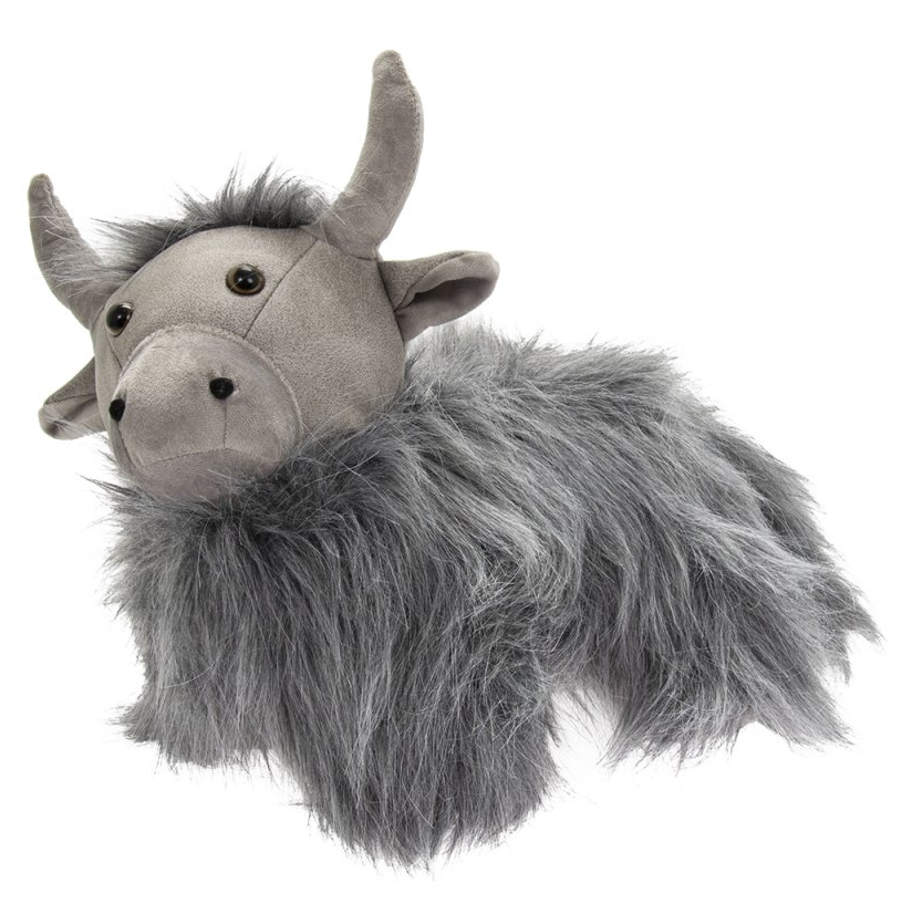 Grey Highland Cow Doorstop Faux Leather Heilan coo Bò Ghàidhealach door stopper