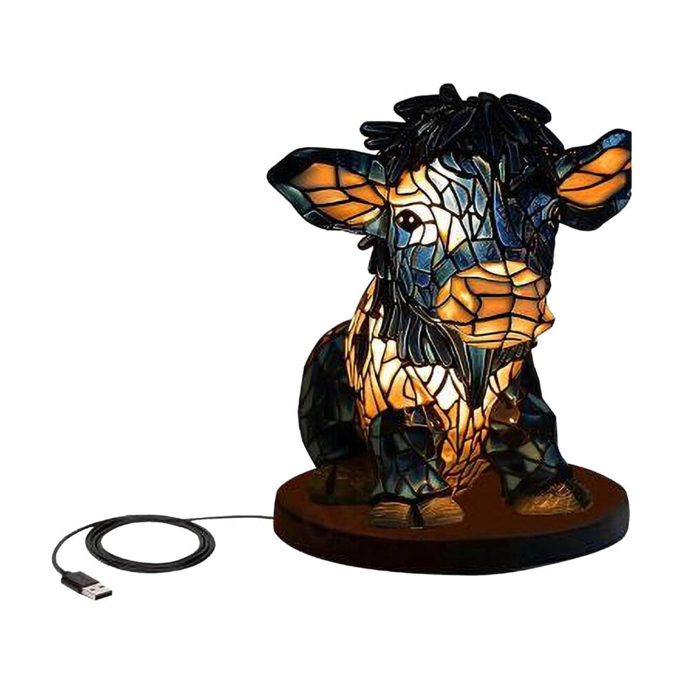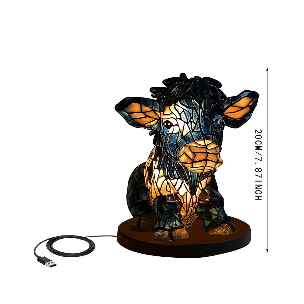 Cow Lamp Highland Table Lamp With USB Port Mini Animal Table Lamp Stained Glass Night Light For Bedroom Office Home